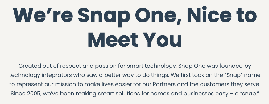 February 6, 2023February 6, 2023 Snap One Portal Homepage and Intro Copy Our Story Intro The Snap Experience on the Careers Page View Full Page Here Share this: Click to share on Facebook (Opens in new window) Facebook Click to share on LinkedIn (Opens in new window) LinkedIn Click to share on X (Opens in new window) X Click to share on Pocket (Opens in new window) Pocket Like Loading... Published by quentin mccree When I work out, which isn't often, I listen to Huey Lewis cause it pumps me up. I also write. View all posts by quentin mccree